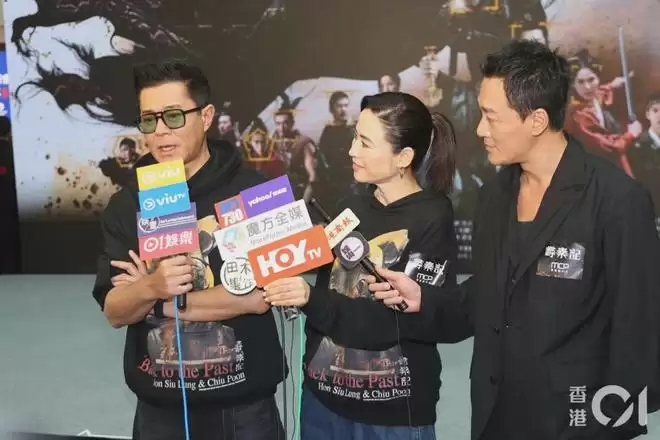 古天樂、宣萱與林峯一同接受傳媒訪問。(陳順禎 攝)