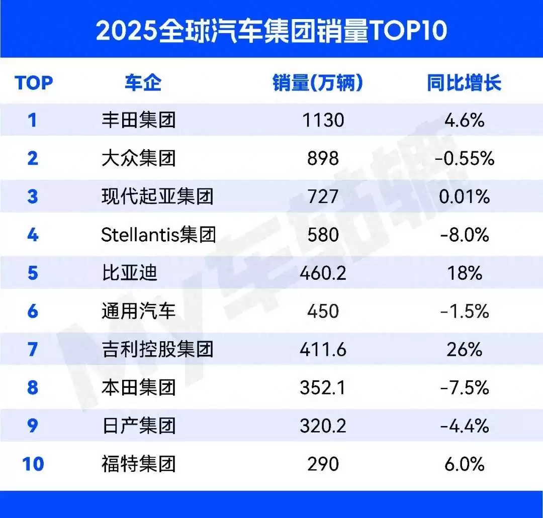 2025全球车企销量榜:丰田蝉联,中国品牌强势崛起