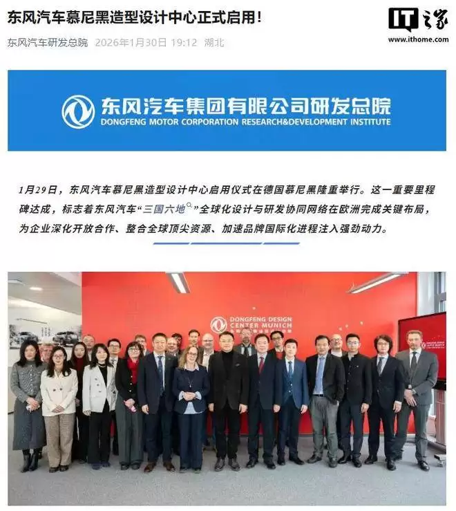 1月29日这天,德国慕尼黑见证了一场汽车行业的盛事——东风汽车慕尼黑造型设计中心正式揭幕启用。这不仅是东风汽车全球化战略布局中的关键一步,也意味着其“三国六地”全球设计与研发协同网络在欧洲迈出了坚实的步伐,为其全球版图增添了一枚重要的战略砝码。