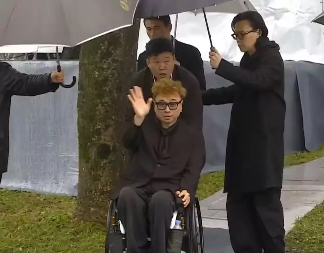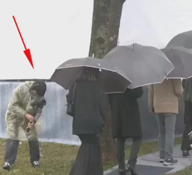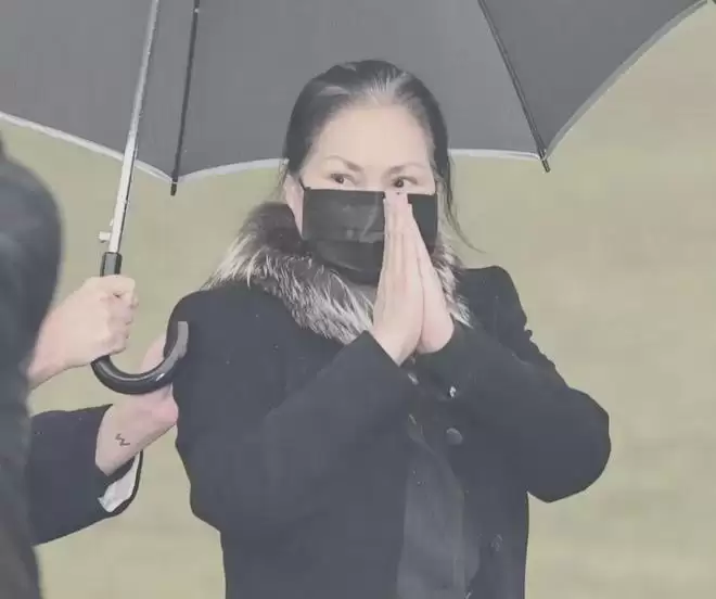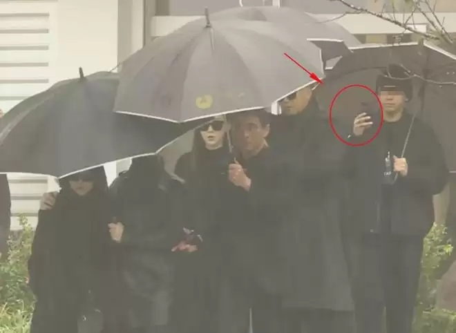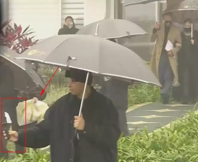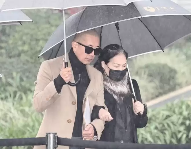 小S丈夫用黑伞隔绝了场外媒体直播镜头,却任由他们面前的摄像师随意怼脸。