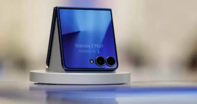 ▲三星的折叠手机Galaxy Z Flip 7(图源:彭博社)