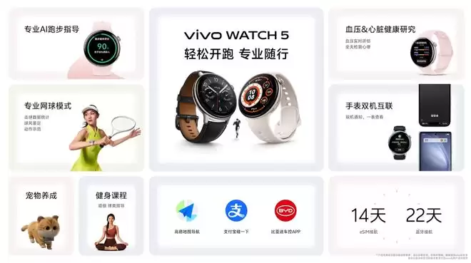 回顾vivo WATCH 5,该产品于去年6月发布,起售价799元,主打网球模式、双机互联以及高德地图导航等特色功能。而vivo WATCH GT 2手表则于去年10月发布,定价499元起,核心亮点在于2400nits高亮高刷屏和全天候健康监测能力。两款手表均可选配eSIM版本。