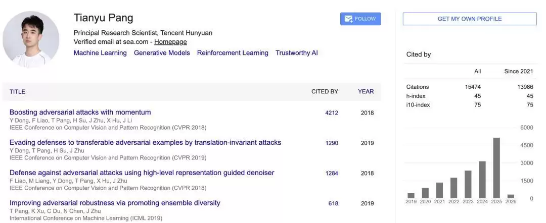 公开资料显示,庞天宇是清华大学计算机系2017级直博生,师从朱军教授。他的研究工作聚焦于机器学习领域,特别关注深度学习及其鲁棒性问题,并已取得一系列重要成果。其研究方向与大模型安全性、可靠性的发展趋势高度契合。他近期的工作涉及大语言模型的安全性问题,包括突破大语言模型限制的技术以及多模态大语言模型等前沿领域。