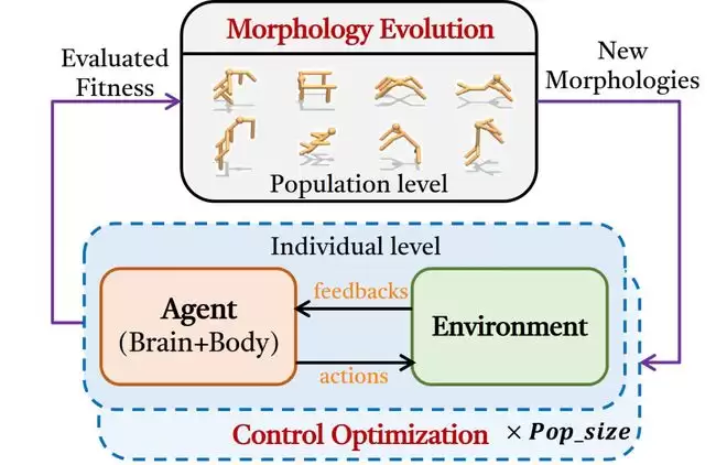 传统的机器人设计在这两方面往往是割裂的:先由人类工程师固定机器人的机械结构,比如设计成为双足或者四轮,再去开发控制软件驱动它。这就像先造好一辆形状固定的汽车再去训练司机。如果汽车本身设计不佳,即使是最好的司机也难以驾驭。