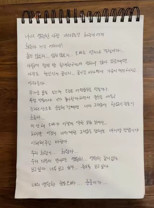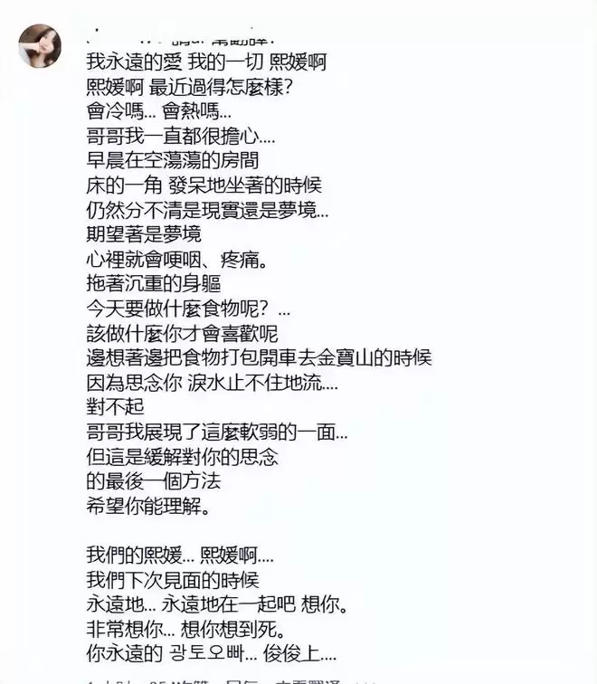 在亡妻的缅怀揭幕仪式结束之后,具俊晔在个人账号连发3条动态,每一条都催人泪下。