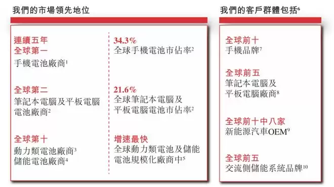 根据灼识咨询的资料,于2024年,按出货量计,欣旺达是全球最大的智能手机电池制造商,全球市场份额达到34.3%。这意味着全球每三部智能手机中,就有一部使用了欣旺达的电池。