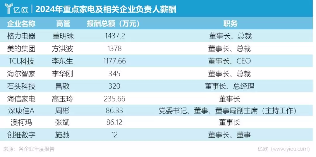 在薪酬方面,美的也给予了方洪波丰厚回报。根据最新年度报告,方洪波从公司获得的税前报酬总额高达1378万元。在主要家电及制造业相关企业负责人薪酬排行中,仅次于格力电器董事长董明珠(约1437.2万元),位列第二名。