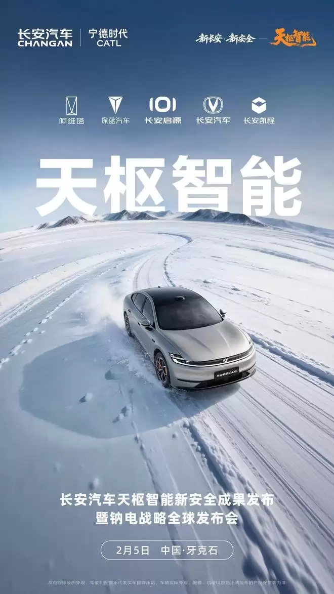 IT之家2月2日讯,长安汽车今日正式官宣,其天枢智能安全新成果发布暨钠电战略全球发布会,将于2月5日在牙克石隆重举行。届时,长安将与宁德时代联手,共同挑战严寒极限,为解决冬季出行难题提供创新方案。