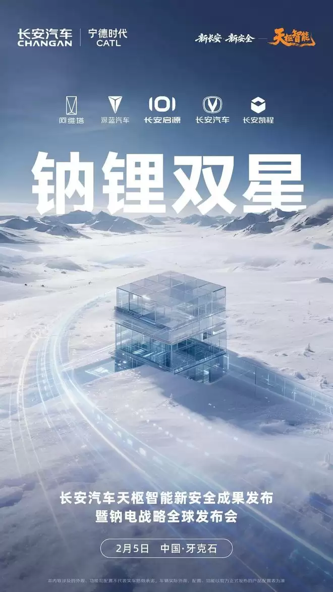 长安汽车2月5日全球发布钠电战略,联手宁德时代