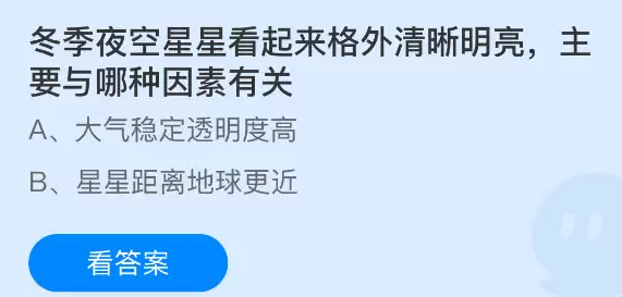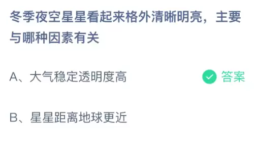 为什么冬季的夜空里,星星会显得特别明亮清晰?这其中究竟有什么奥秘呢?快来参与支付宝小鸡课堂的每日答题吧!只需花一分钟回答,就能赢取饲料喂养小鸡,在轻松有趣的互动中奉献爱心!2026年2月3日蚂蚁庄园课堂的正确答案是:【大气稳定透明度高】。冬季星空格外清晰明亮,主要与大气稳定、透明度高有关。