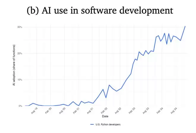 自 2024 年 8 月起,美国 Python 开发者使用 AI 编程的比例开始大幅上升
