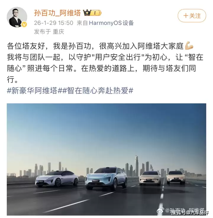 阿维塔科技迎来营销体系重要人事变动,前理想汽车副总裁孙百功正式加盟出任副总裁,全面负责市场推广与产品操盘工作。这位兼具华为荣耀海外操盘经验和理想汽车全系产品管理背景的高管,其履新被视为阿维塔深化与华为战略合作的标志性动作。根据规划,双方将在2030年前联合推出17款车型,其中5款升级车型将于2026年亮相,覆盖三大主流乘用车品类。