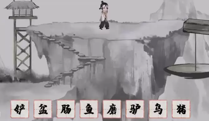 把【铲】和【肠】进行拆解,重新组合成【钥】,即可帮助小女孩打开大门。