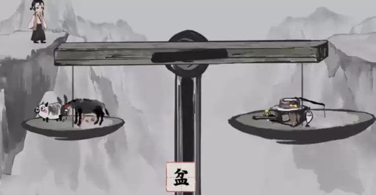 《栖云异梦:梦蝶》第五关“人烟”,玩家需要在老伯处收集【铲】、【盆】等六件物品,并在眺望台与平台分别获取【鸟】与【猪】。解开天平的谜题:将【鱼】和【铲】置于左侧托盘,【盆】放在右侧。随后取走【铲】备用,并将【柴】拆出的【火】用于烧毁拦路的木头。最后,将【铲】与【肠】拆解重组为【钥】,为小女孩打开大门即可顺利通关。
