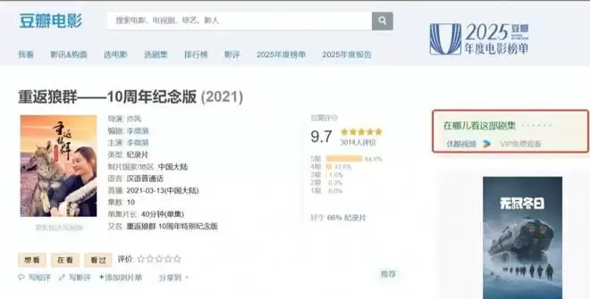 2017年,电影《重返·狼群》上映;2024年,《重返狼群10周年纪念版》纪录片在优酷独家上线,更完整地补充了很多电影没来得及讲述的内容素材。如今纪录片翻红,不少新的观众纷纷来优酷站内观看这部老片。今年1月中旬,《重返狼群10周年纪念版》纪录片的第11、12集重新在优酷“满血上线”,这是目前全网唯一的纪录片完整版。