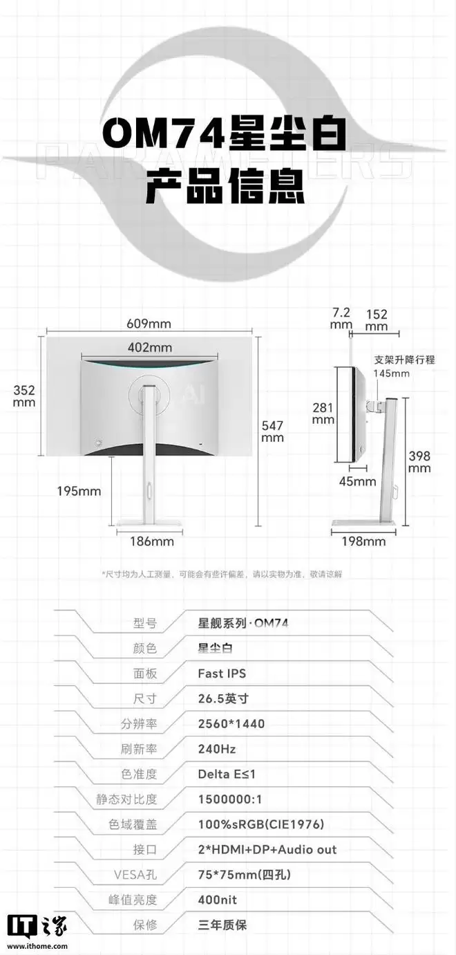 IT之家附该显示器详细参数如下: