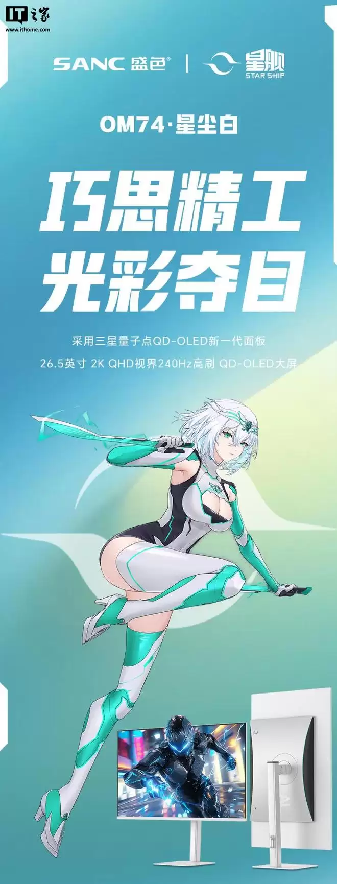 IT之家 2 月 3 日消息,盛色 OM74 显示器“星尘白”配色现已开售,新品主打电竞玩家,搭载 26.5 英寸 2K 240Hz QD-OLED 面板,标价 2399 元。