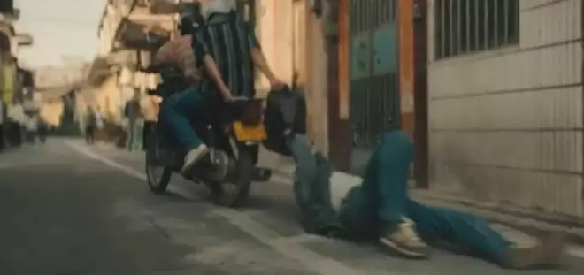 让鸣哥刚借到高利贷,就被飞车党抢劫拖行。