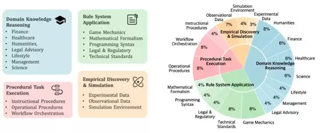 经验发现与模拟:上下文提供复杂系统内的实验数据、观测记录或模拟环境。与前几类涉及演绎推理不同,这一类专注于归纳推理,模型必须从数据中发现潜在的定律或结论,并应用它们来解决任务。