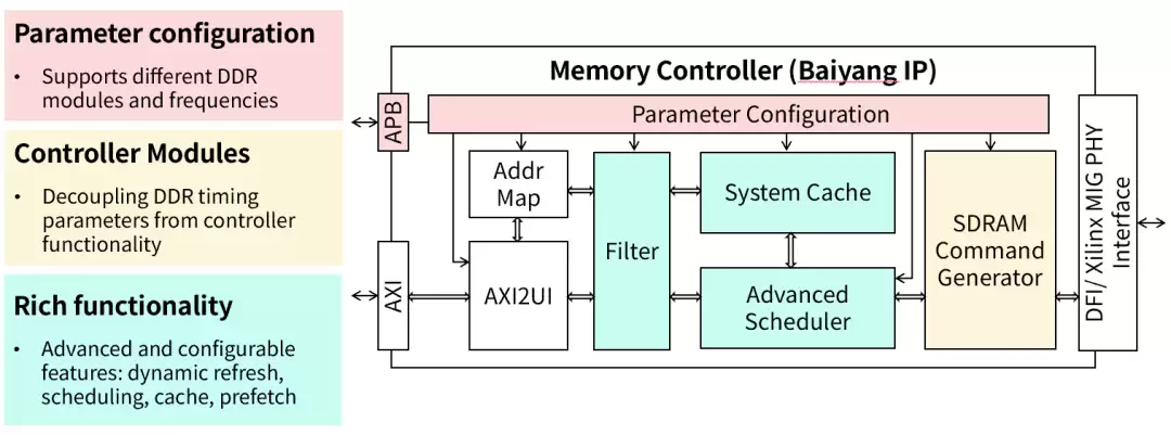 “白杨”IP采用模块化、可配置的架构设计。除了实现内存控制器的基本功能外,还集成了多项高级特性: