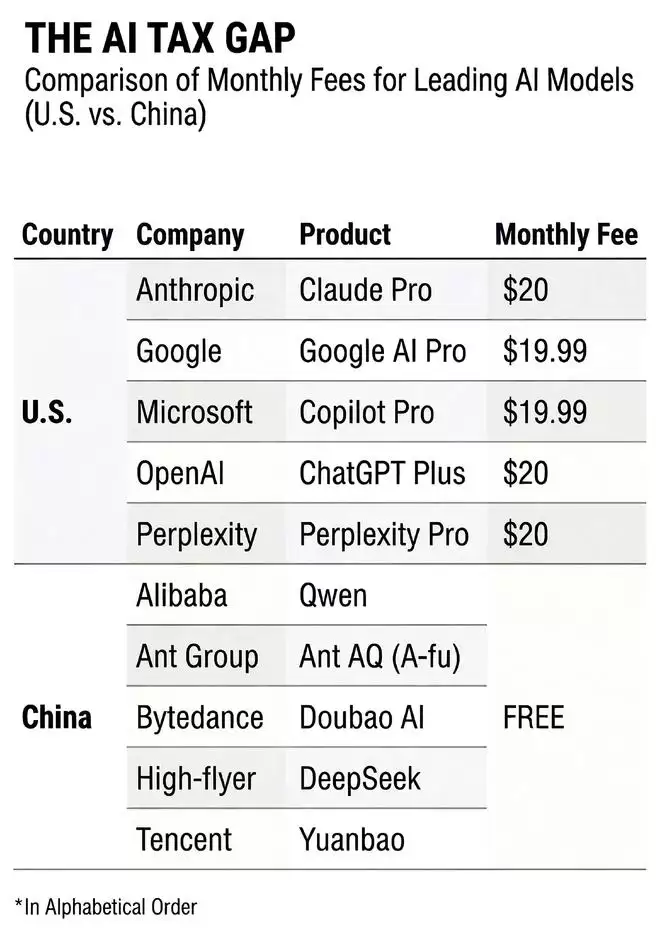 文章尖锐地提出了一个概念——“AI税”(AI Tax),指出在硅谷精英们正忙于构建昂贵的“订阅围墙”时,中国AI应用正凭借其“基础设施化”的特质,成为一张影响全球的新名片。