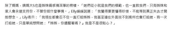 大S的离世,对小S还有徐妈的打击特别大。