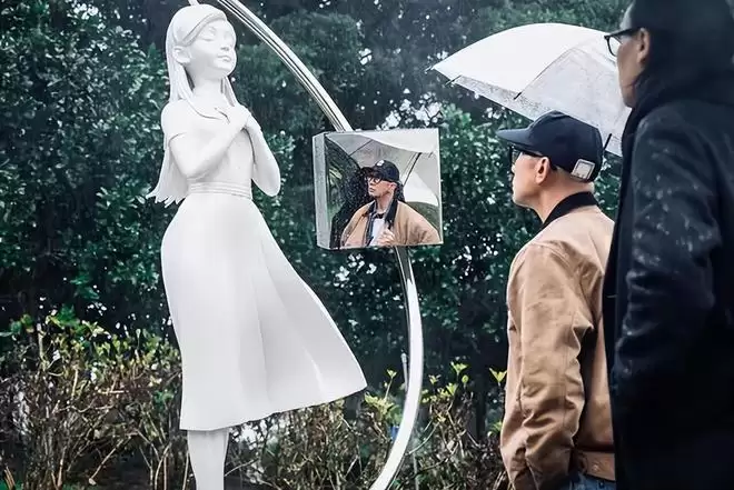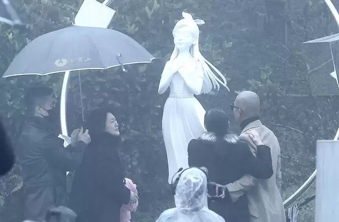 小S在雕像揭幕仪式上特别感谢具俊晔,当妈妈的雕像揭开粉色的幕布时,她仰望着雕像哭成了泪人。