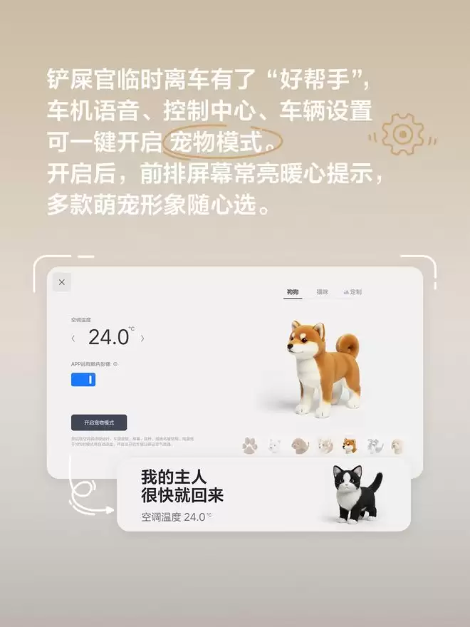 在便捷性方面。用户不仅可以通过控制中心、车辆设置一键开启,也支持语音指令的这种人性化控制:说出“理想同学,开启宠物模式”,车机即进入准备界面,供用户调节温度、形象及远程开关后确认开启;若指令更为直接 ——“理想同学,直接开启宠物模式”,系统则会跳过确认步骤,直接按上次记忆配置执行。