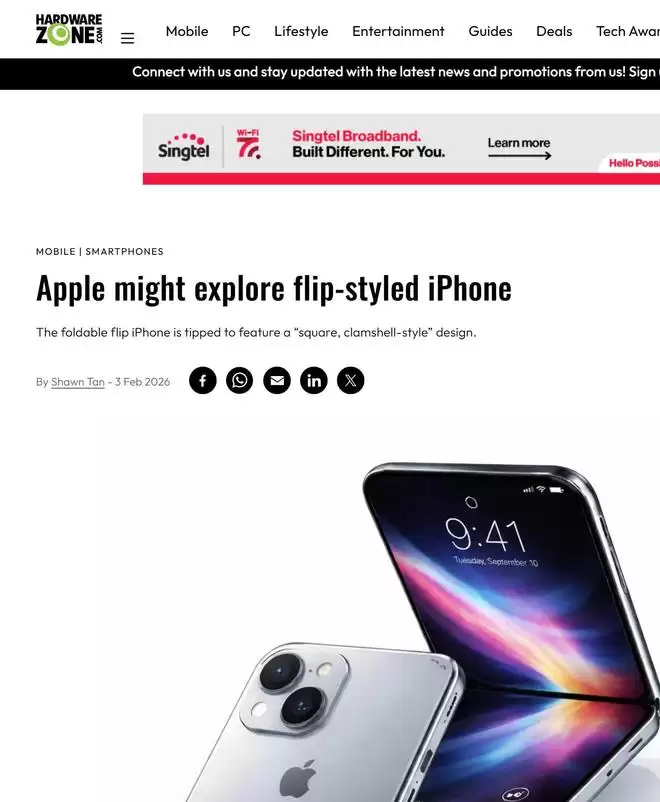 【环球网科技综合报道】2月4日消息,据HardwareZone援引彭博社报道称,苹果公司正在积极探索一种采用“方形翻盖式”设计的可折叠iPhone。这一动向表明,尽管市场普遍预期苹果将于2026年晚些时候率先推出书本式(横向对折)可折叠iPhone,但该公司并未排除同步开发翻盖式(纵向对折)机型的可能性。