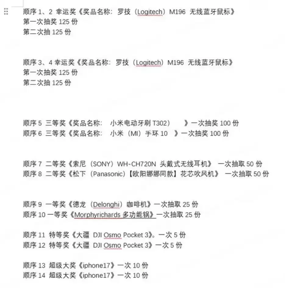 针对网络流传的负面信息,零跑汽车最新公布了年会详细安排。晚宴菜单显示,当晚提供6道凉菜、17道热菜,包含佛跳墙、波士顿龙虾等高端菜品。奖品设置涵盖多个层级:500份蓝牙鼠标作为幸运奖,电动牙刷、无线耳机等实用电子产品分列不同奖项,最高奖项为20部iPhone17手机。公司相关负责人表示,网传信息存在片面性,未能全面反映年会实际情况。