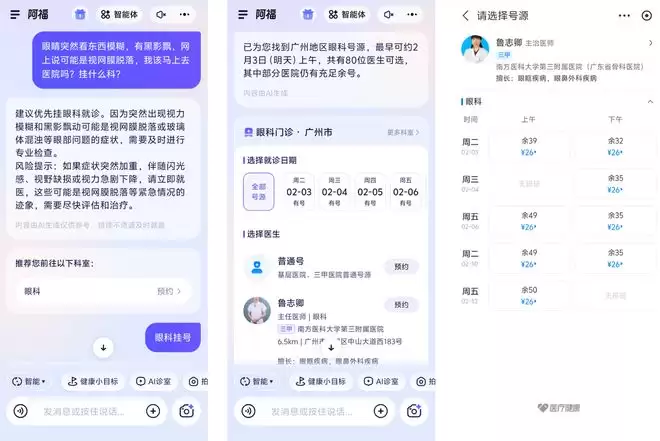 若 AI 仅止步于文本对话,它充其量只是一个高级客服;真正的医疗痛点,往往在于就医环节。而这正是阿福与通用大模型拉开差距的重要「赛点」。