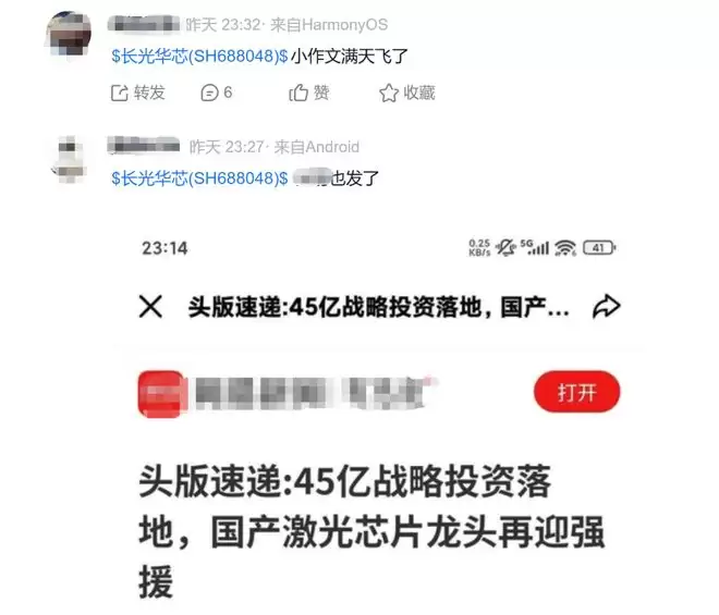 中国基金报记者检索发现,目前网络上多个渠道仍可查到相关文章,发布时间集中于2月3日。相关文章内容较为一致,均提及“近日,华为旗下投资平台完成对长光华芯的45亿元战略注资”“随着45亿元资金的到位,双方的协同效应已进入落地阶段”“华为45亿元战略投资长光华芯,将产生多层面的产业影响”等。