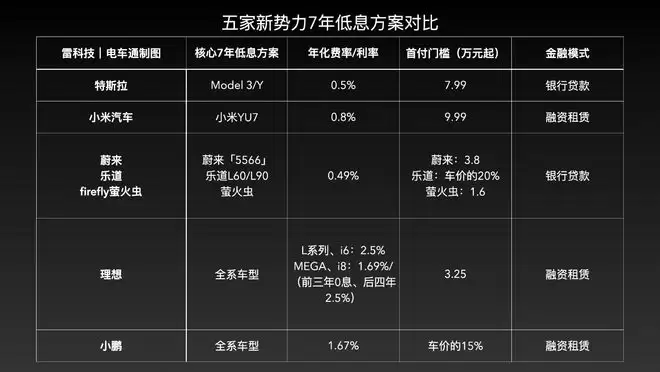 距离2026春节还有两周的时间,车市迎来年末最后一波促销冲刺。在特斯拉率先开启7年低息「金融战」后,小米、蔚来等多家新势力迅速跟进,同样推出7年低息金融方案应对,一场没有硝烟的战争就此拉开帷幕。