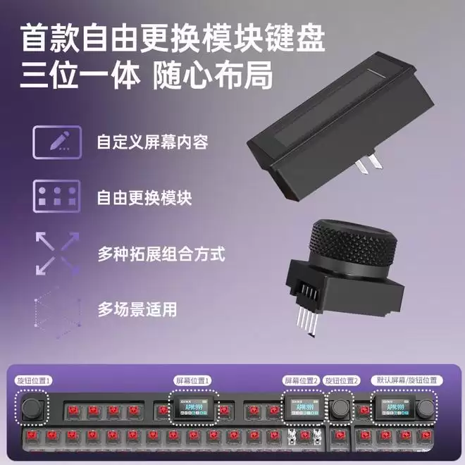 GANSS推出三模机械键盘GS3101T Pro:可选旋钮与小屏幕