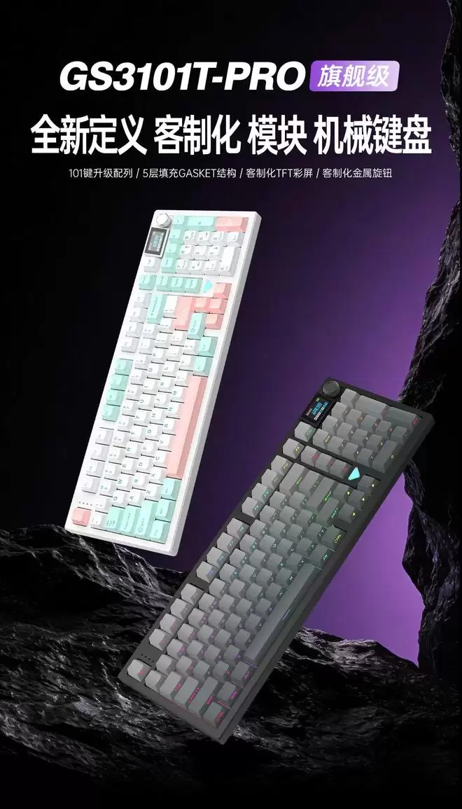 IT之家 2 月 3 日消息,GANSS 迦斯昨日上线了 GS3101T-PRO 三模机械键盘。这一型号采用 100% 全配列设计,TFT 彩屏模块和旋钮各有三组热插拔安装位置,用户可根据自身喜好与