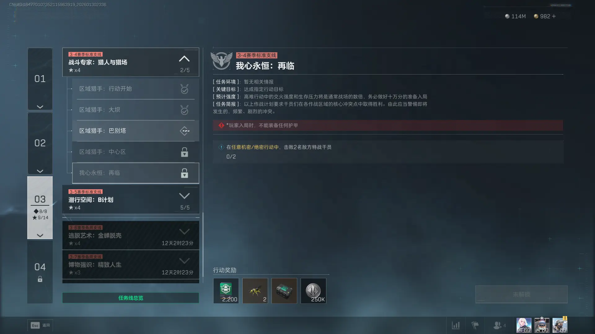 4. 任务完成奖励:经验值×2200、机械工蜂模型×2、3x3保险1天权限卡×1、哈夫币×250000
