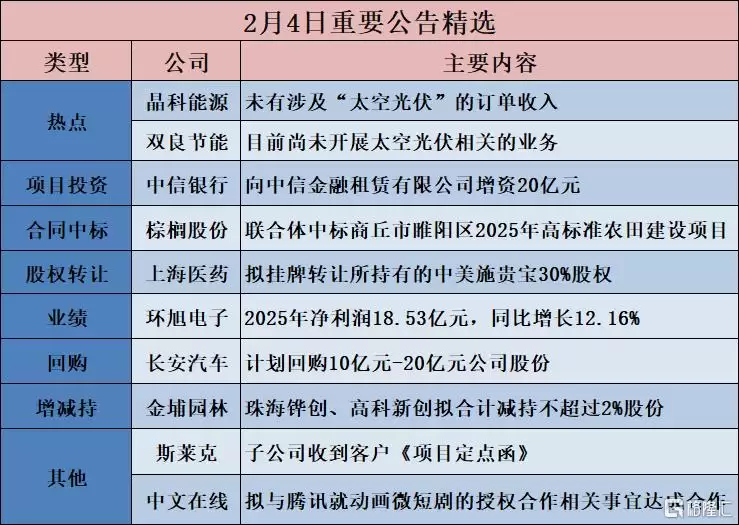 长安汽车计划回购10-20亿元股份;晶科能源澄清光伏订单