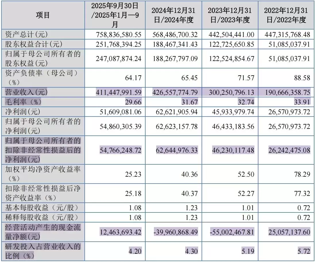自2016年切入锂电池行业以来,华汇智能凭借自主研发突破技术壁垒,成功推出砂磨机、制浆机等锂电制造设备。从2023年至2024年,公司营业收入连续三年攀升,分别达到1.91亿、3.00亿和4.27亿元;同期扣非后归母净利润也从0.27亿元增长至0.63亿元。这一增长轨迹,与新能源汽车、储能等下游行业的蓬勃发展同频共振。