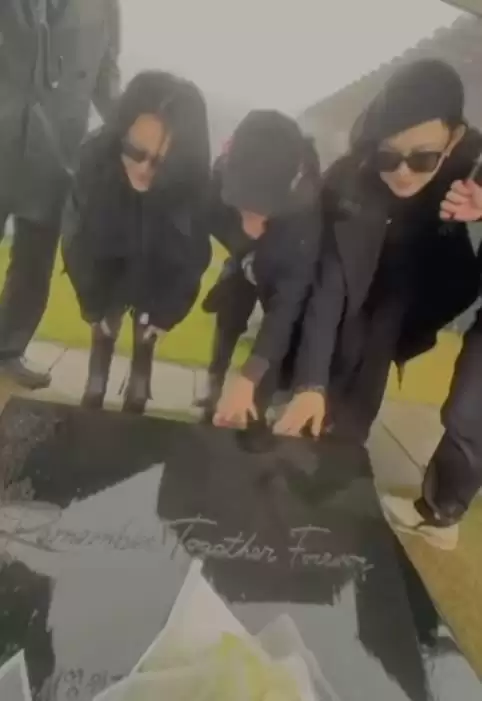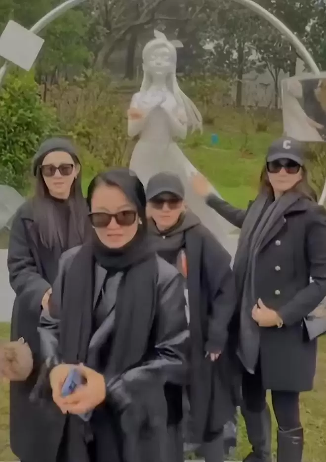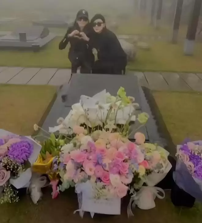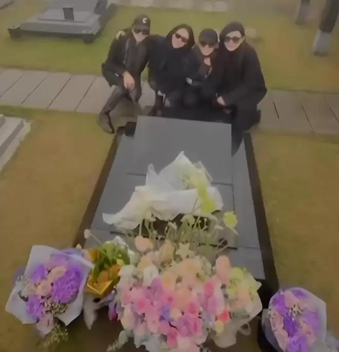 所以姐妹们把带来的鲜花摆放到了大S的墓碑前,然后大家一起在墓碑前面合影。