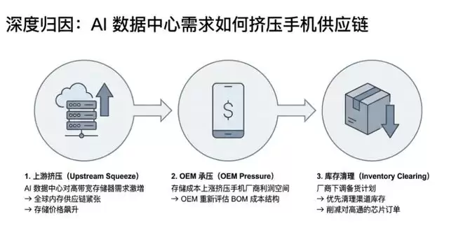 管理层将主要变量指向存储器供给偏紧与价格上行。AI数据中心对存储需求抬升,挤压手机OEM的供给与成本空间,部分客户下调备货与渠道库存,从而拖累短期芯片订单。