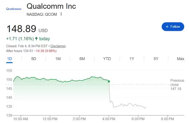 高通财报创收新高但业绩展望平淡,股价盘后大跌近10%