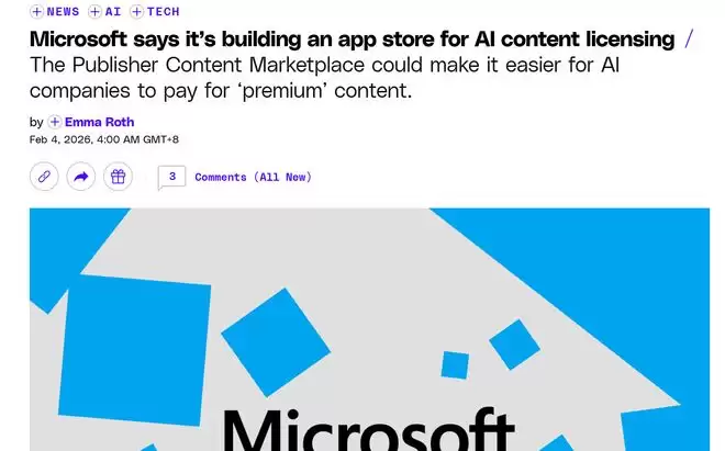 平台将采用商业授权与开源标准并行的双轨道授权模式:在商业层面,实行按内容交付价值付费,从独立出版物到大型媒体集团均能被覆盖;同时,该平台也兼容由出版行业自发推行、开源的“极简授权协议”(RSL)标准,遵循元数据声明与爬虫付费规则。微软方面表示,试点阶段将与出版伙伴紧密协作,共同推进相关工作,具体整合方案尚未对外透露。