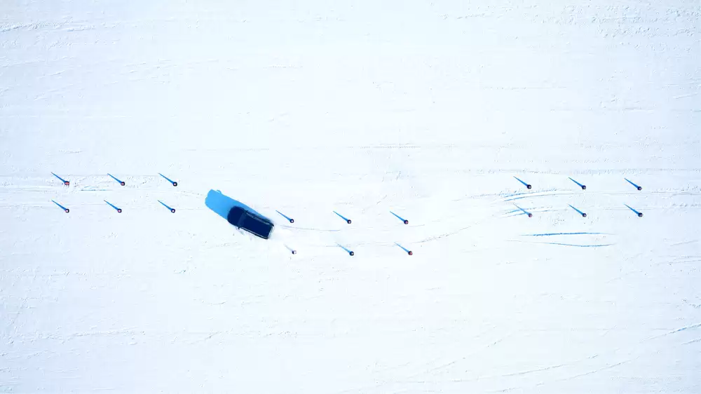 整车性能极限验证则全面覆盖雪地绕桩、雪地麋鹿测试、雪面爬坡、雪地加减速及对开路面制动、对开坡道攀爬、雪面定圆等核心科目,严苛考核车辆的高效动力输出、底盘调校、智能四驱系统扭矩分配及车身稳定控制系统的极限性能。