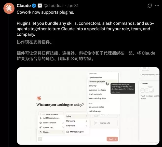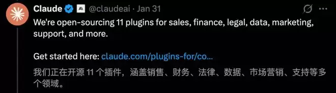 话又说回来,Anthropic发布的Cowork「插件」有何魔力,竟引发全球软件股票的恐慌?