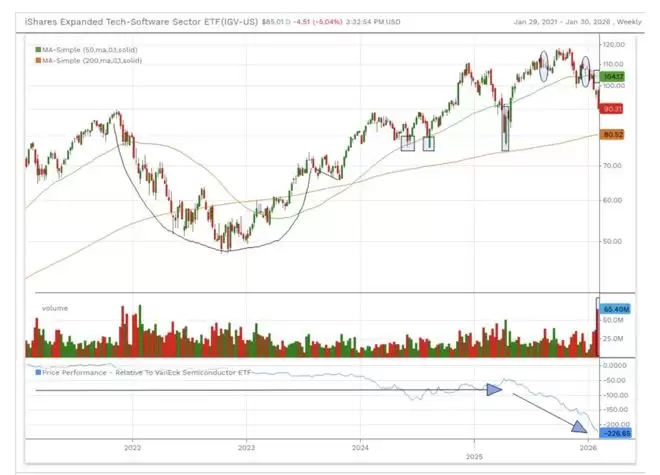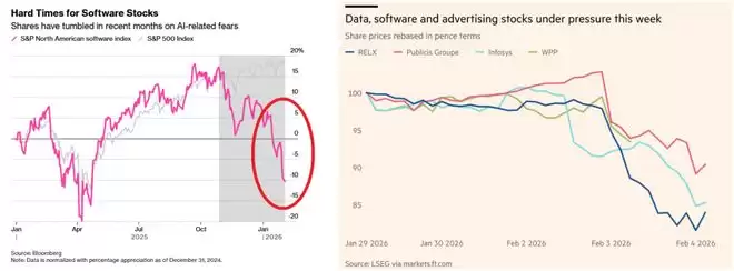 短短5个交易日内,标普500软件服务指数暴跌近 13%,市值缩水之快,甚至让刚刚创下历史新高的标普500大盘都黯然失色。