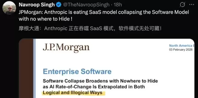 摩根大通发文称:Anthropic正在吞噬整个世界,让Saas商业模式崩塌,且无处可藏!