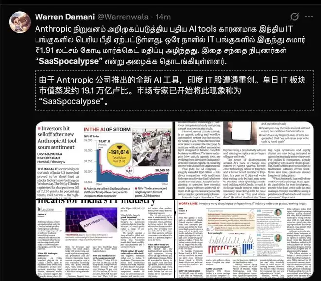 劳动力成本套利似乎正在消失,160万印度IT从业者受影响,而Anthropic仅有2500名员工。