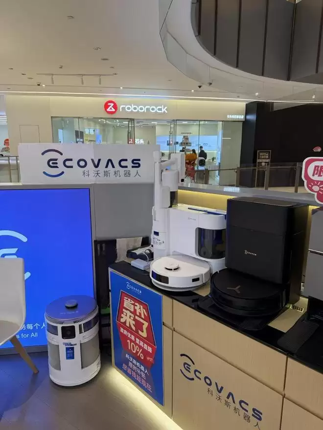 在佛山千灯湖环宇城,小雷先后走进石头旗舰店和科沃斯专卖店。这家科沃斯专卖店,更像是一家「临时店」,开在商场 4 楼过道位置,显然是为了「卖货」而设,与之搭档的则是销售人员的一张利嘴。这与商场同楼层拥有正式铺面的石头旗舰店,形成鲜明反差。