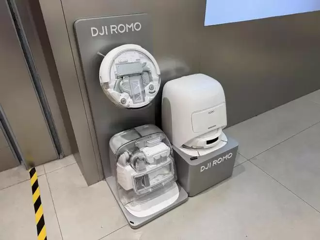 去年8 月,大疆进军智能清洁市场,推出旗下首款扫地机器人产品 ROMO 系列。在小雷走访的广佛几家大疆门店,均看到店内扫地机器人产品陈设。