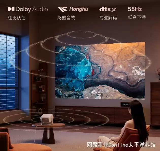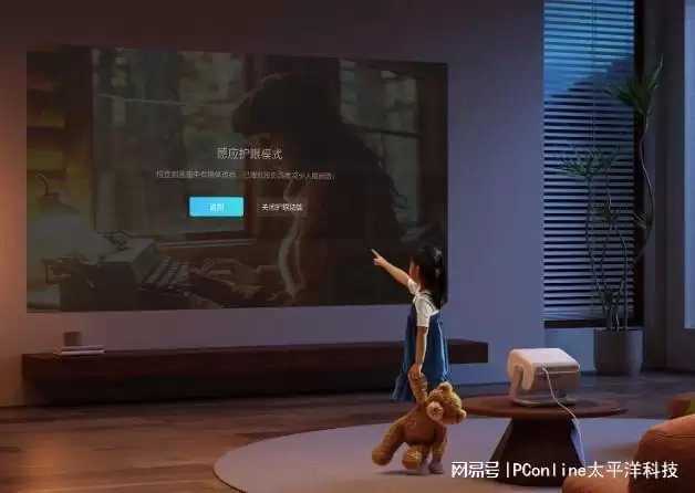 三重护眼设计,全家都能放心使用。硬件级0有害蓝光技术,从源头减少蓝光对眼睛的伤害,搭配SGS低蓝光认证,长时间观看也不会觉得眼酸、眼干;AI防射眼功能十分贴心,当有人靠近投影画面时,会瞬间降低亮度,避免强光刺激眼睛,尤其适合有孩子的家庭;柔光漫幕技术则让画面光线更柔和,漫反射成像方式相比电视更护眼,孩子上网课、看动画时,能最大程度保护视力,家长也能少一份顾虑。此外,光影歌词墙功能也很受年轻用户喜爱,听歌时歌词会以浪漫的光影形式投射在墙面,打造专属的音乐氛围,让居家时光更具仪式感。